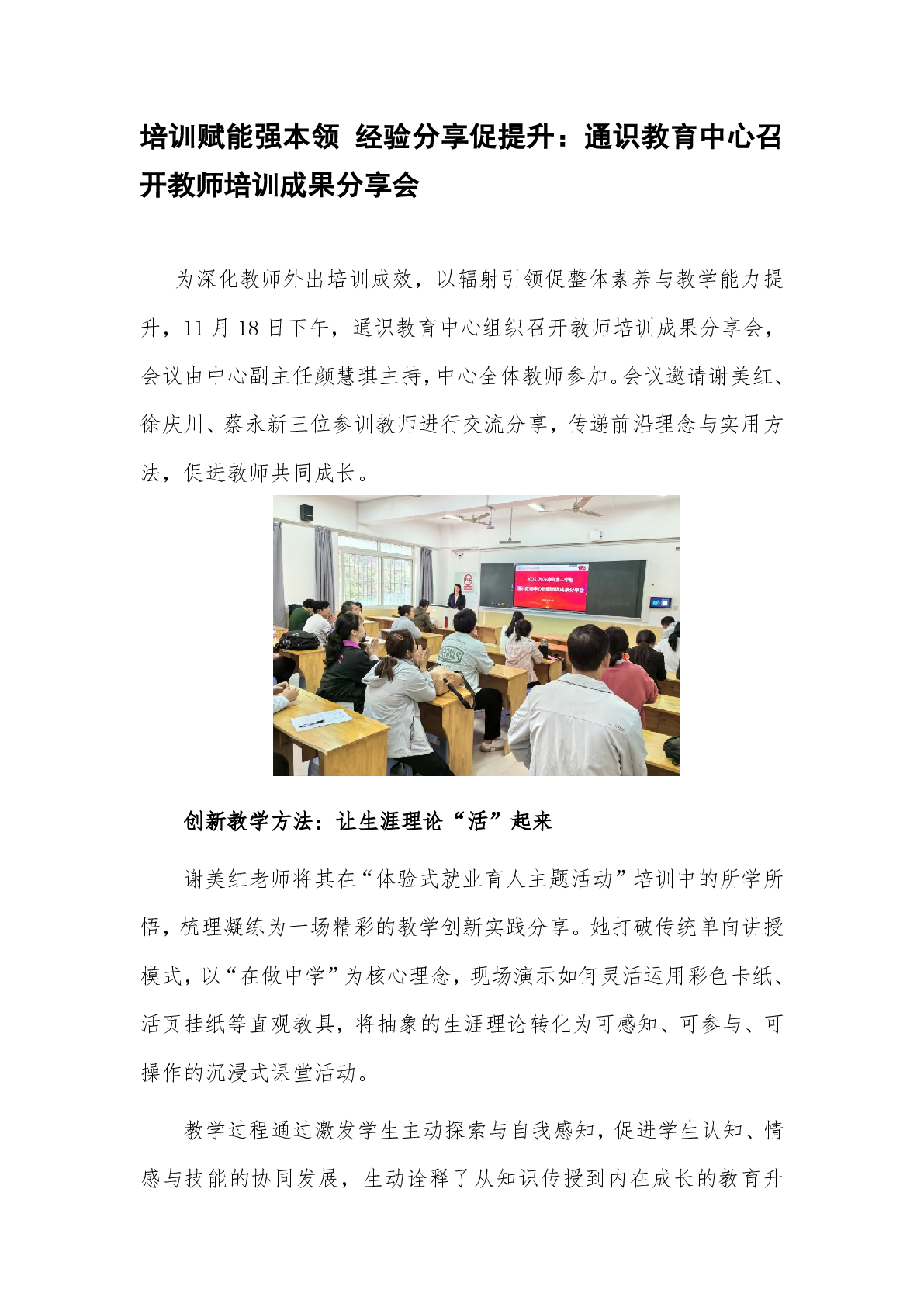 培训赋能强本领 经验分享促提升:通识教育中心召开教师培训成果分享会