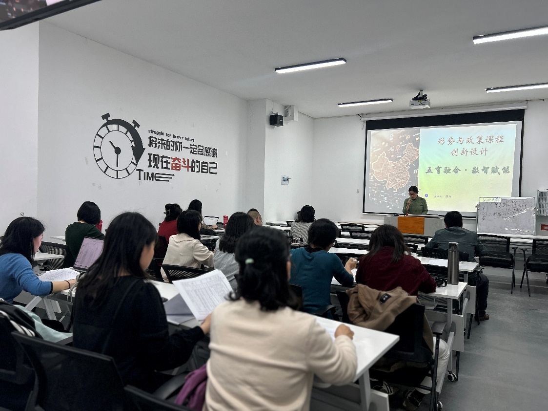 备课会紧紧围绕本学期形势与政策课程教学展开,就形势与政策课程新内容、专题教学的重点和难点讨论分析,进一步拓宽教师们上课的思路,提升思政课教学质量。教研组教师结合自己的授课经验和学校思政课实际情况,针对教学重点和难点,结合学生专业特点,提出了各自教学创新方法和理念。通过集体备课,进一步提升了课程的针对性和亲和力,优化了教学方案,丰富和深化了教学内容。