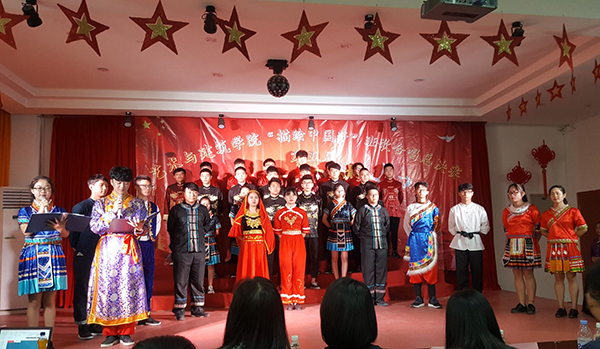 随后六支队伍通过形式多样的演唱表演方式分别完成了必唱曲目《走向复兴》和自选曲目。比赛气氛活泼紧张,各班学子极尽所能展现各自风采,他们以高昂的热情、出众的才艺博得了台下老师同学们的阵阵喝彩。来自16级建工和造价专业的“追梦队”以其颇具民族风格的演唱形式、精美的少数民族服装,精心演绎《相亲相爱》,体现了班集体团结奋进的精神风貌。